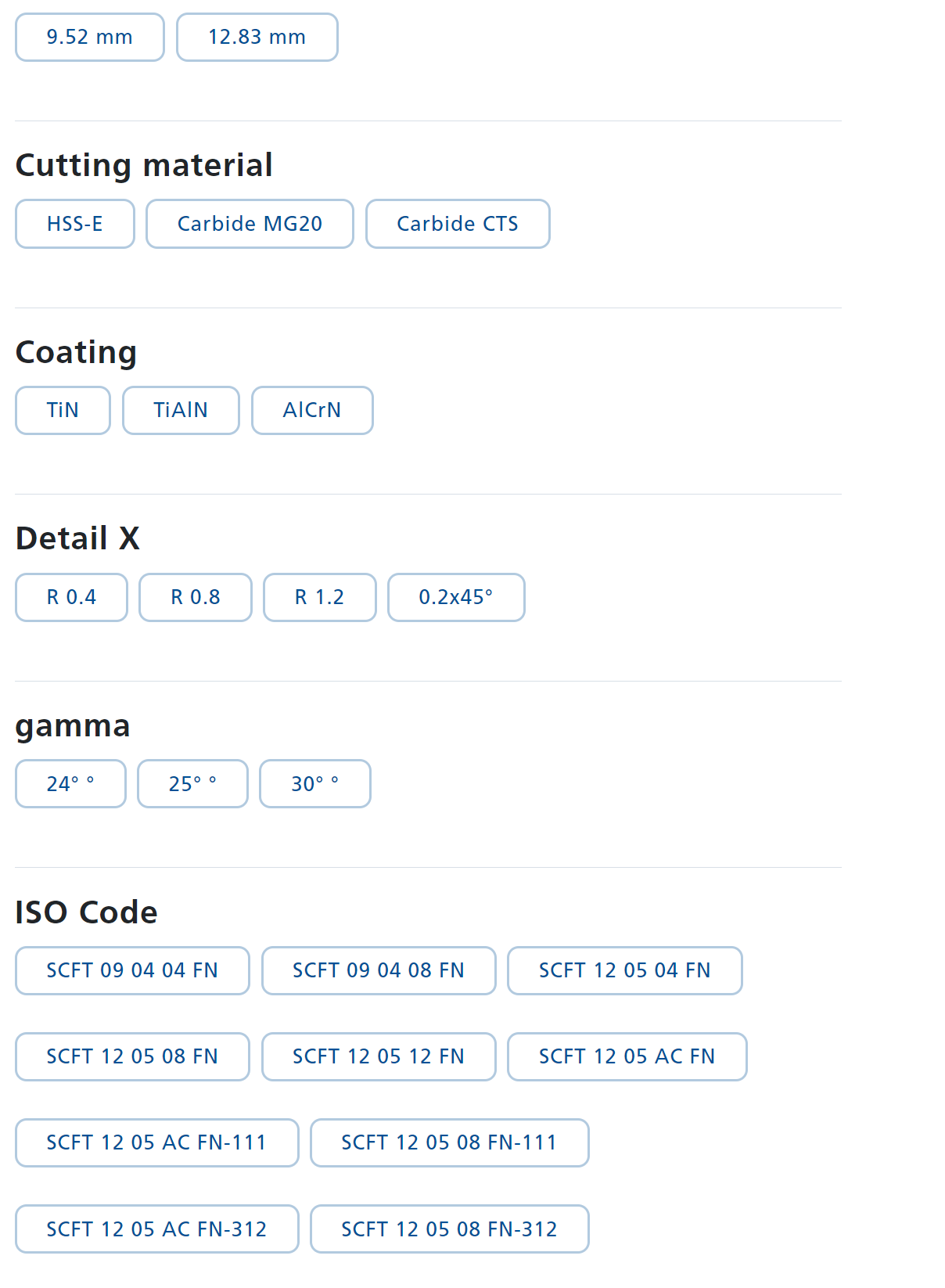 Carbide CTS | AlCrN | 12910180 | SCFT 12 05 08 FN-312 | G | 12.83 | 5.56 | 5.5 | 24° | R 0.8 | r/l |