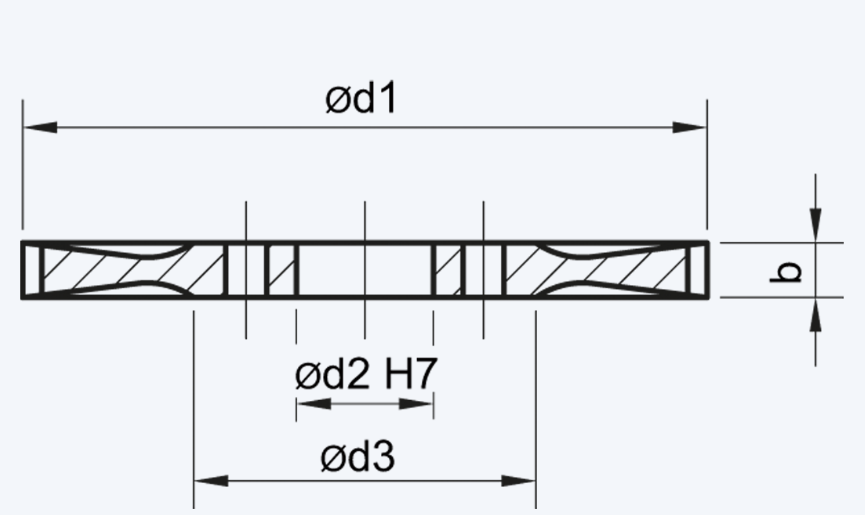 圆锯坯料用于根据需要进行齿形加工,可能的齿形为 B、Bw、C(最小螺距 T=3 mm)。