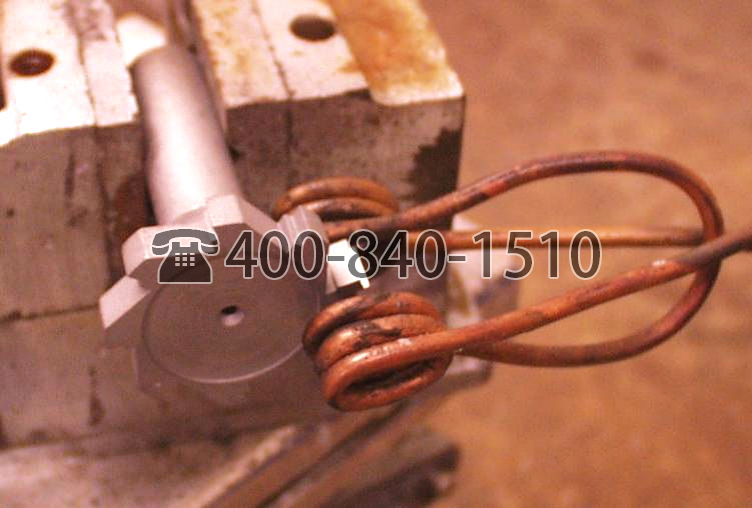 分离式螺旋线圈用来加热硬质合金和圆形刀具。刀具放置在虎钳中,将硬质合金刀头放置在刀齿上。加热5秒钟。