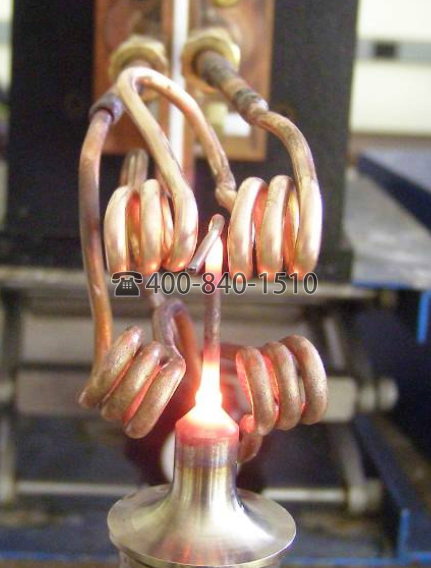 两组六匝螺旋线圈用来同时加热钢管。加热时间20秒。