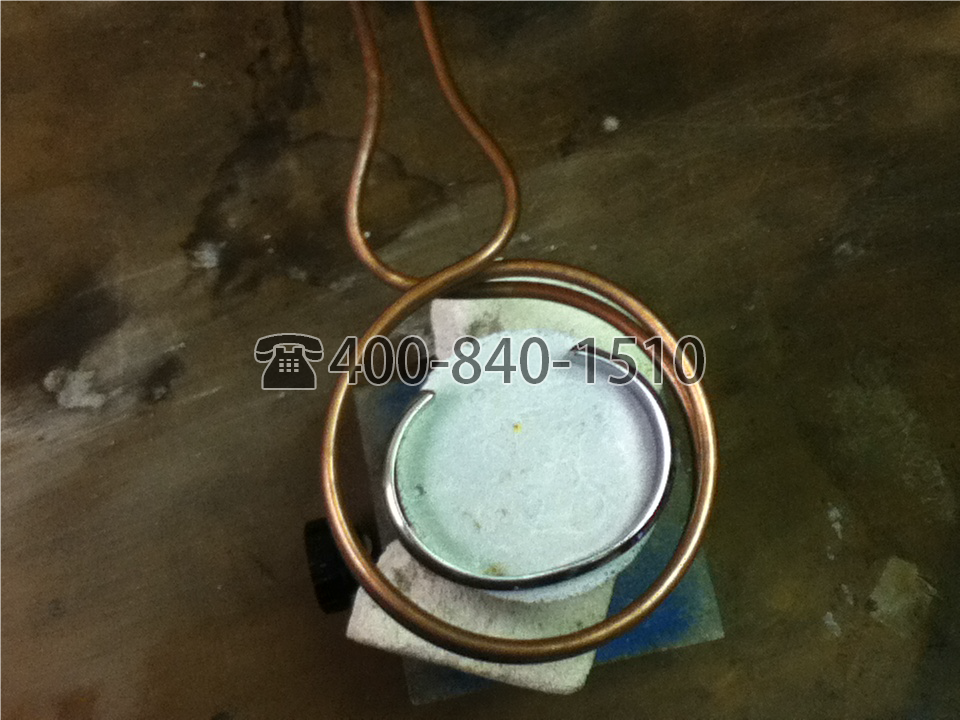 加热过程:将手链放在感应线圈内并打开加热。 在 35 秒内,手镯的中心带变黑了。 客户一直在使用手电筒,但由于速度、安全性和可重复性,他们希望使用感应加热。
