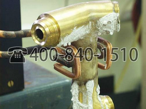 两匝C形线圈用来加热。将钎料环放置在连接处,第一个接头加热30秒完成后,旋转工件加热第二个接头30秒,两次焊接共需60秒。