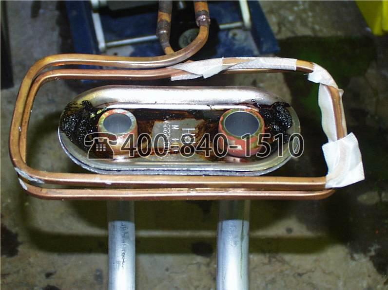 在较小的零件周围使用螺旋线圈,当法兰插入线圈时,这些零件被固定在虎钳中。小零件在 20 秒内被加热,并在接合区域达到所需的温度。