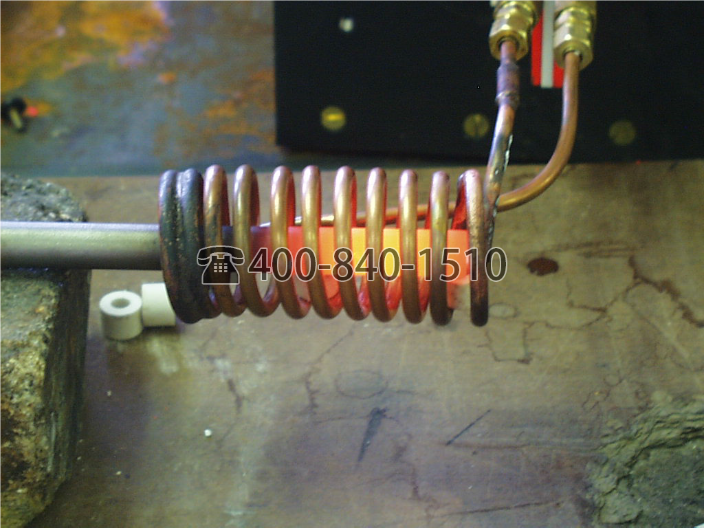 加热过程:12 匝螺旋线圈用于所需的加热模式。 使用 11kW 的射频能量,管子在 10 秒内被加热到所需的温度。 (对于 5 秒的循环时间,或对于较大的零件直径,建议使用 30 kW 的电源。)