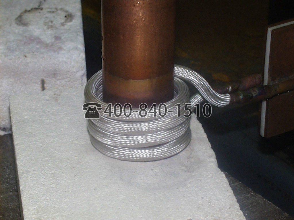 设备: 45kw感应加热器;远程工作头(1微法电容8个,总电容8微法);特殊定制线圈