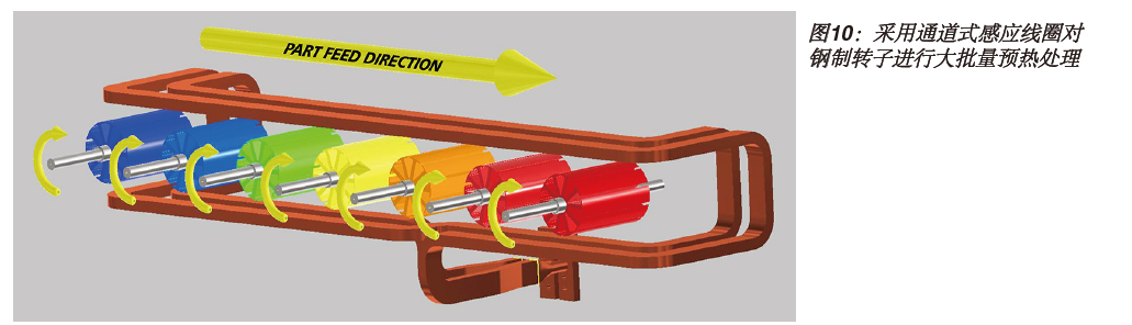 加热转子组件中钢质叠片的唯一可行方案是采用内径式线圈。尽管这种加热方式在实现整体表面均匀热传导方面存在挑战,但它能更高效地将能量传递至组件内部。更高的能量传输速率使得叠片组件能够快速达到目标温度,因此即使在多数安装环境中需要配置多个加热工位,该方案仍具有显著优势。