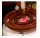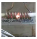 十四匝线圈加热100毫米锌丝,放置5秒达到成型所需状态。