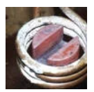 分裂式四匝螺旋线圈使锯条均匀通过,每个刀头加热5秒退火影响区。