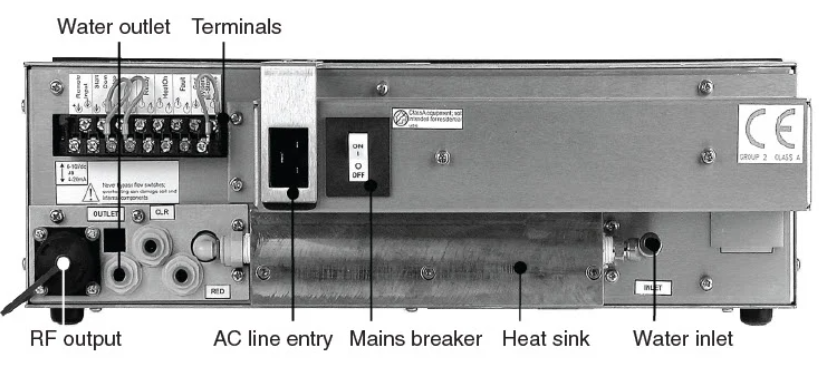 Display | LCD Monochrome, 240w x 128h pixels, 2 line x 16 character LCD; displays frequency, power, setpoint, timer and fault descriptions | |