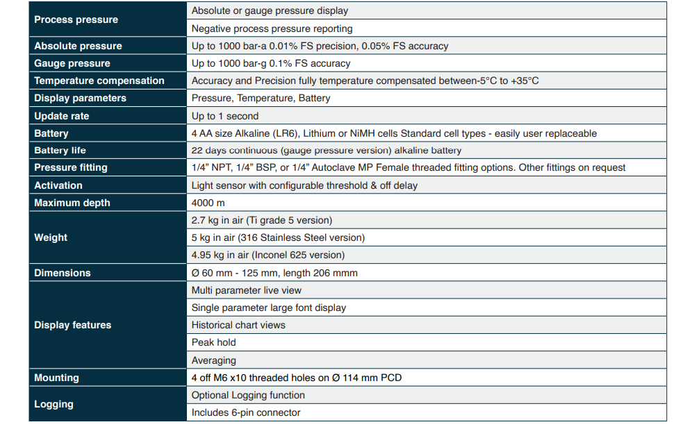 Aquatec Group HYDROgauge Mk 2 水下数字压力表规格: