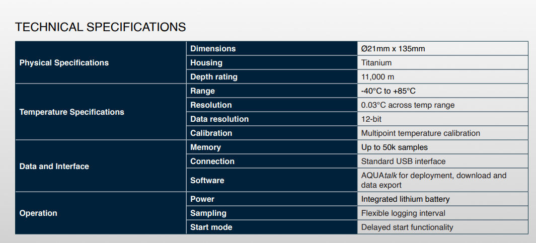 Aquatec Group Limited HYDROlog 3400深海温度测量记录仪特征: