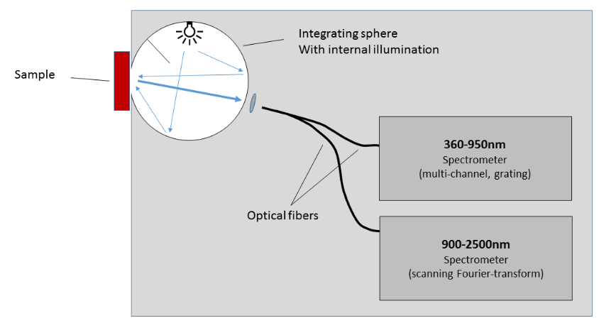 ARCspectro VIS-NIR DR系统将覆盖360纳米至950纳米的多通道光栅光谱仪,与配备扩展范围铟镓砷探测器的扫描式傅里叶变换光谱仪(探测范围900-2500纳米)相结合。两台光谱仪通过 bifurcated bifurcated bifurcated bifurcated bifurcated 分叉光纤与内置照明的积分球相连。