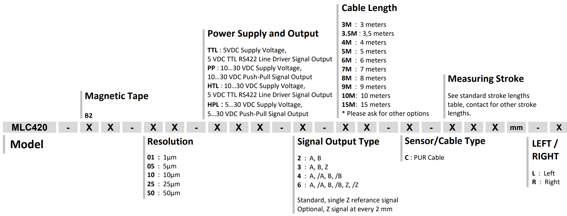 如:MLC420-B1-10-TTL-6-3M-C-650mm-R