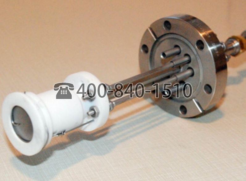 The ion source is available as a complete assembly (model-100) with ion source (model DCIS-101), receptacle flange (DCIS-102), gas tee, and solid charge holder. The DCIS-101 ion source is also available separately and will plug into a standard Colutron receptacle flange. The ion source with oven is also available. The oven is used for vaporizing solid materials up to 2000C.