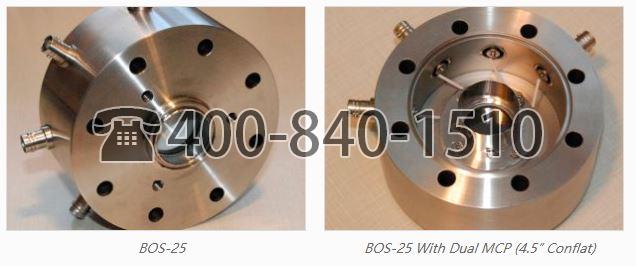 Optional configurations are discussed in detail below and include 6″ (152mm) flange mount (BOS-25-6), dual MCP plates (chevron), SHV feedthroughs, fiberoptic windows, and CCD camera systems.