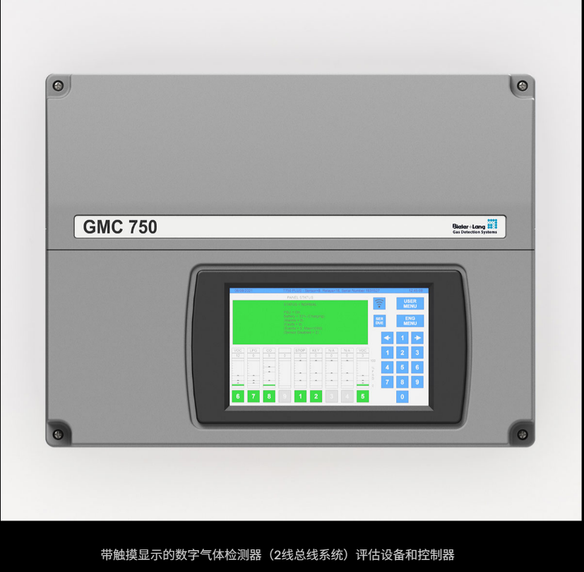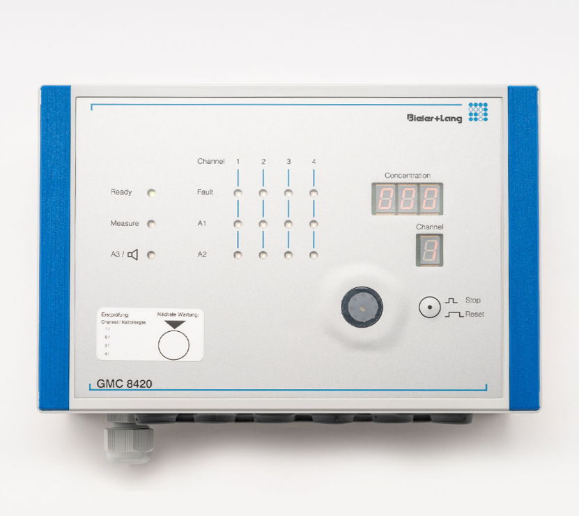 德国Bieler+Lang,气体预警系统评估装置,GMC 8034 – 全新,用于连接最多 4 个输出 4-20 毫安信号的气体传感器,配合最多4个气体传感器,GMC 8034监测室内空气,并通过激活各种警告信号警告有害气体泄漏