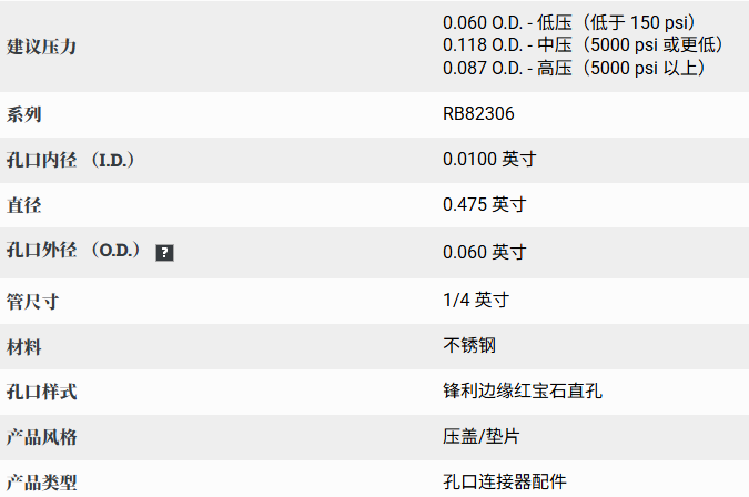 2025年10月27日 联系人:唐经理 15821984229美国 Bird RB82306SS-22081现货供应 0.0100 英寸内径(I.D.)0.475 英寸直径 压盖/垫片连接器孔口美国 Bird RB82306SS-22081现货供应 0.0100 英寸内径(I.D.)0.475 英寸直径 压盖/垫片连接器孔口压盖/垫片连接器孔口产品为不锈钢管应用提供平整的端面密封连接。当组件拧紧时,这些小型圆盘会自动压入配合端面密封的珠状连接处,在圆盘两端面形成可靠密封。RB82306直径约0.475英寸。本产品配有专用卡扣,便于组装时对压盖进行居中定位。 22081 Bird Bird precision RB82306SS RB82306SS-22081 喷嘴 垫圈