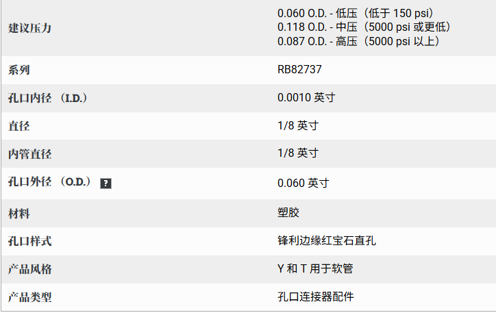 本产品可搭配锐边红宝石孔口系列使用,孔径范围为0.0004英寸至0.035英寸。