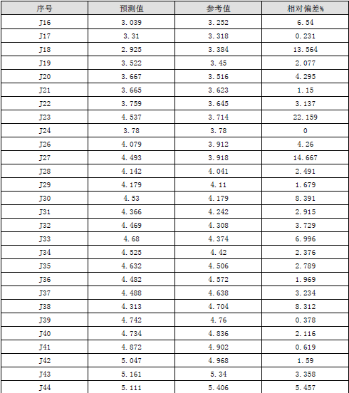 验证分析:表7中可以看出,模型对适用范围内的样品的预测还是很准确,聚酯多元醇的预聚体中NCO含量外部验证偏差为4.929%,外部验证偏差为2.410%,虽然模型的样品量较少,只有49个,但得出的偏差很小,说明这次实验结果还是非常成功的。