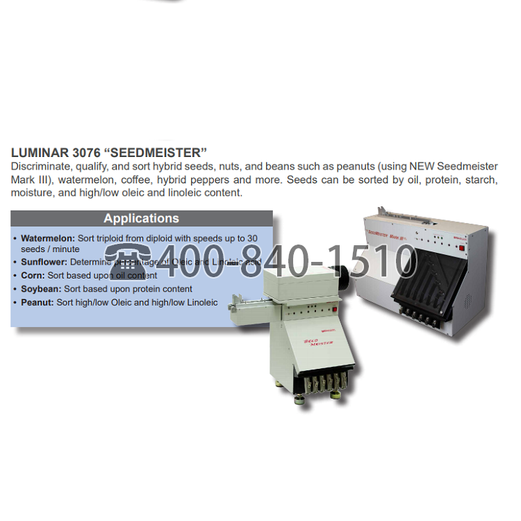 鉴别、鉴定和分类杂交种子、坚果和豆类,如花生(使用新的播种机马克三),西瓜,咖啡,混合辣椒等。种子可以通过油,蛋白质,淀粉,