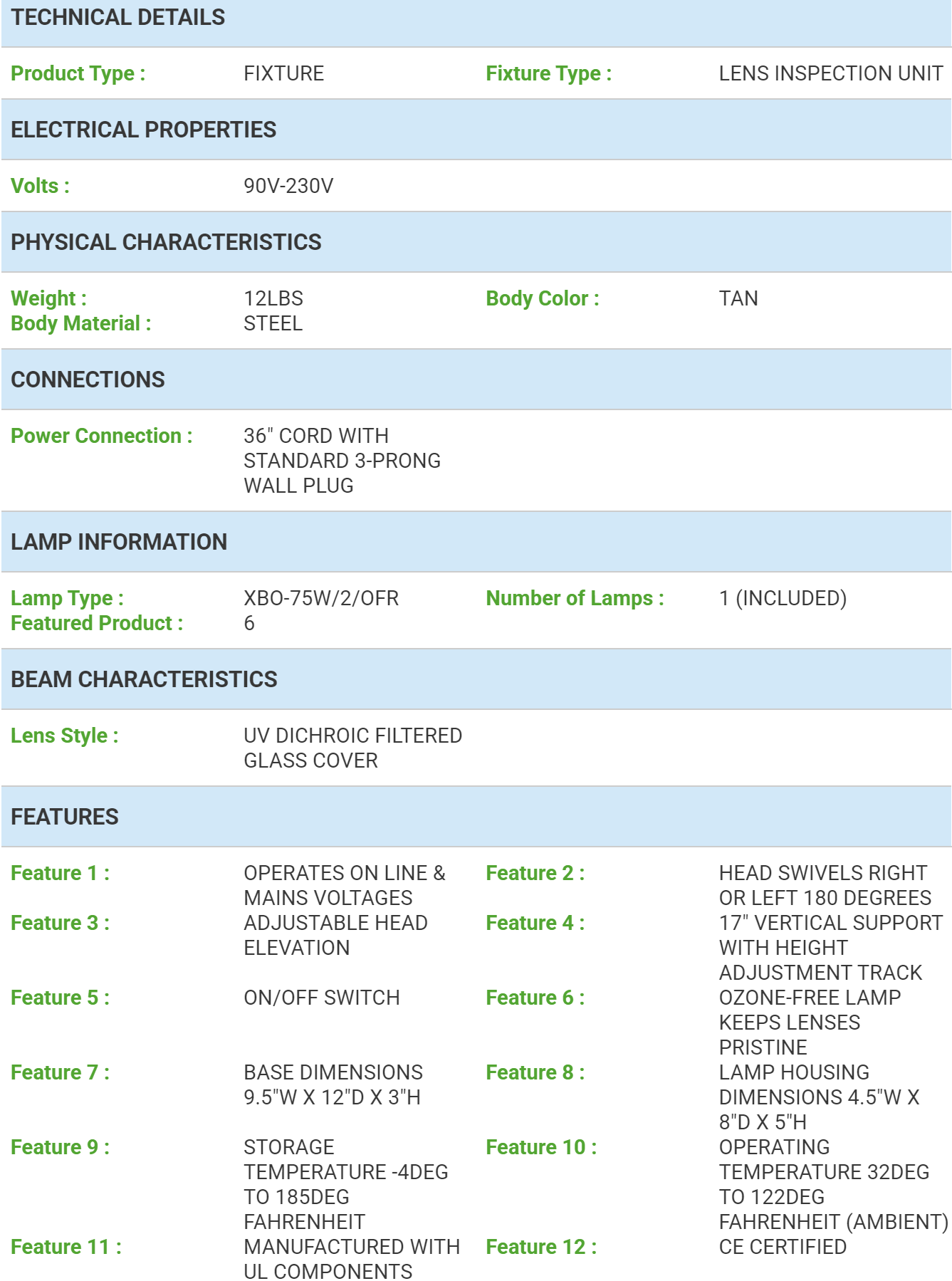 Bulbtronics QC-X75-CE 镜片检测仪技术规格: