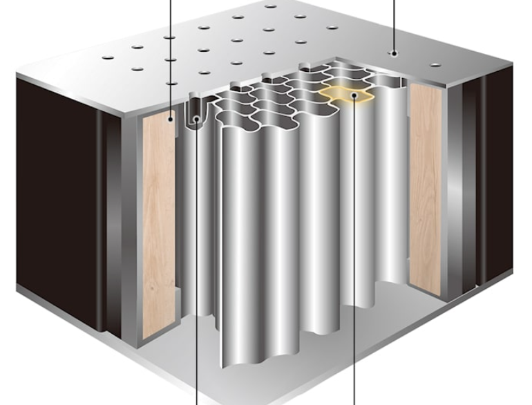 和侧壁垂直环氧树脂粘合,增加了其芯密度并最大限度地减少了其单元尺寸。钢蜂窝芯结构提供