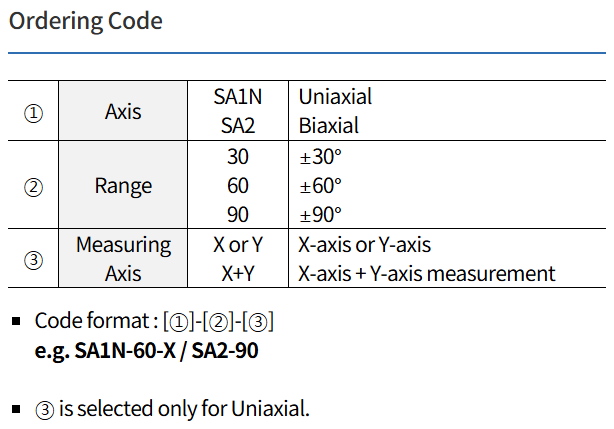 | 测量轴 | 单轴:X 轴 或 Y 轴 | SA1N |
