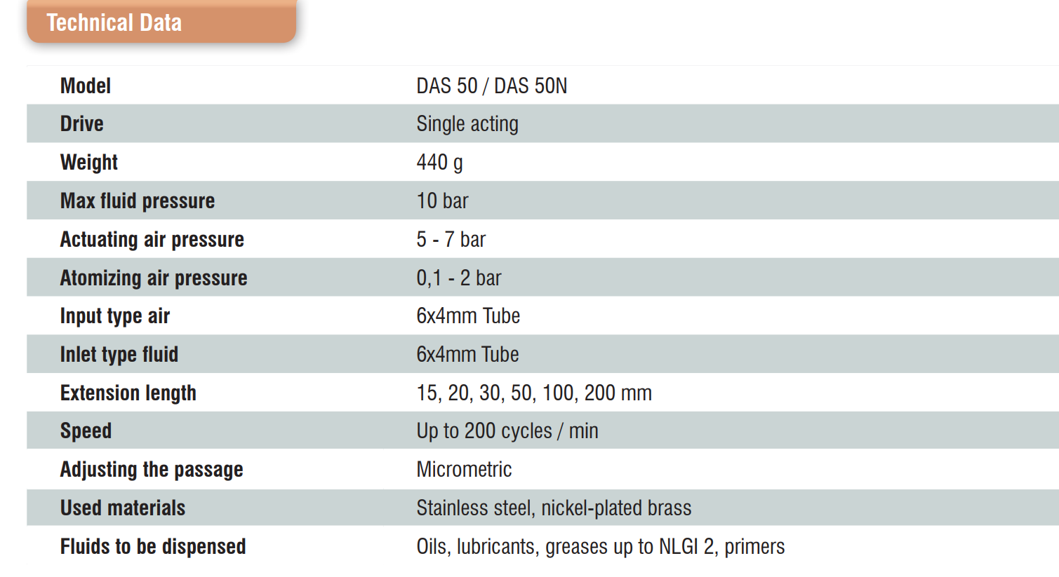 DAV Tech DAS 50N 微型喷雾阀配置: