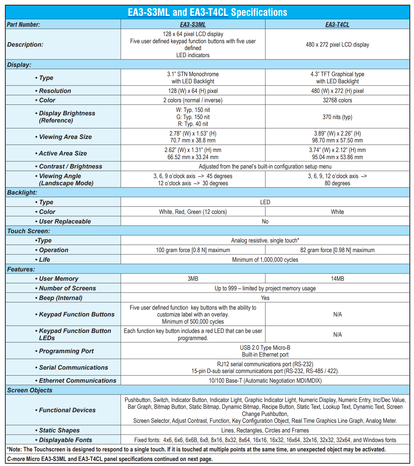 C-MORE MICRO EA3 SERIES 3INCH TOUCH SCREEN HMI