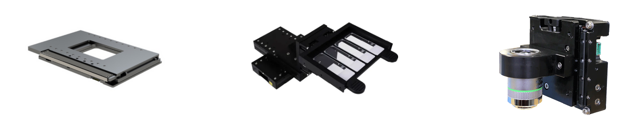XY 显微镜平台:用于在显微镜下对正在成像或分析的样品(载玻片、流控池、孔板等)进行定位,允许在两个自由度上运动。