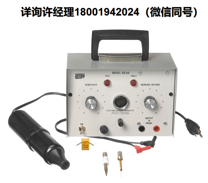 测试和缺陷灯指示试验状态。此外,当检测到缺陷时,警报将响起。十位电压和灵敏度开关允许广泛的使用范围,灵敏度调整平衡了良好表面上的感应电流和针孔处的电流,特别适用于测试薄涂层。电路带通断开关和接地端子,用于测试小型物体。控制单元可以是台式或壁挂式。高压探头可拆卸,带有6英尺的电线。提供校准证书。