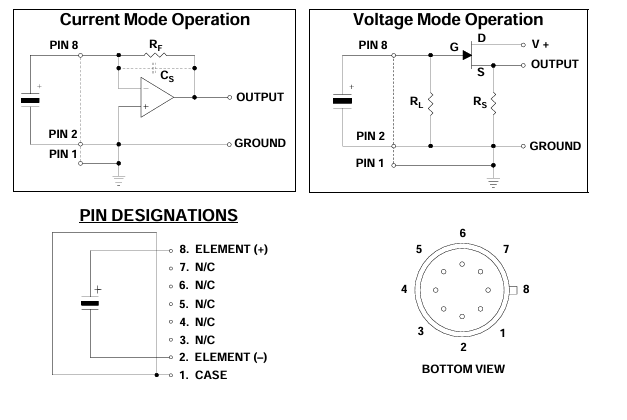 实现均匀频率响应的另一种方法是将探测器连接到电流-电压转换器(电流模式操作)。当探测器连接到转换器的虚地时,负载电阻为零,与晶体电容形成理想的微分器。频率上限由电阻和转换器反馈电阻的并联电容决定,即 1/(2�����)。如果需要脉冲积分,探测器可以在电压模式下工作,使用高阻值负载电阻(1×106Ω 至 1×1011Ω),这将保留探测器固有的积分特性。上升时间和频率响应取决于所使用的电子器件。更多信息请参见 ElecData #134。