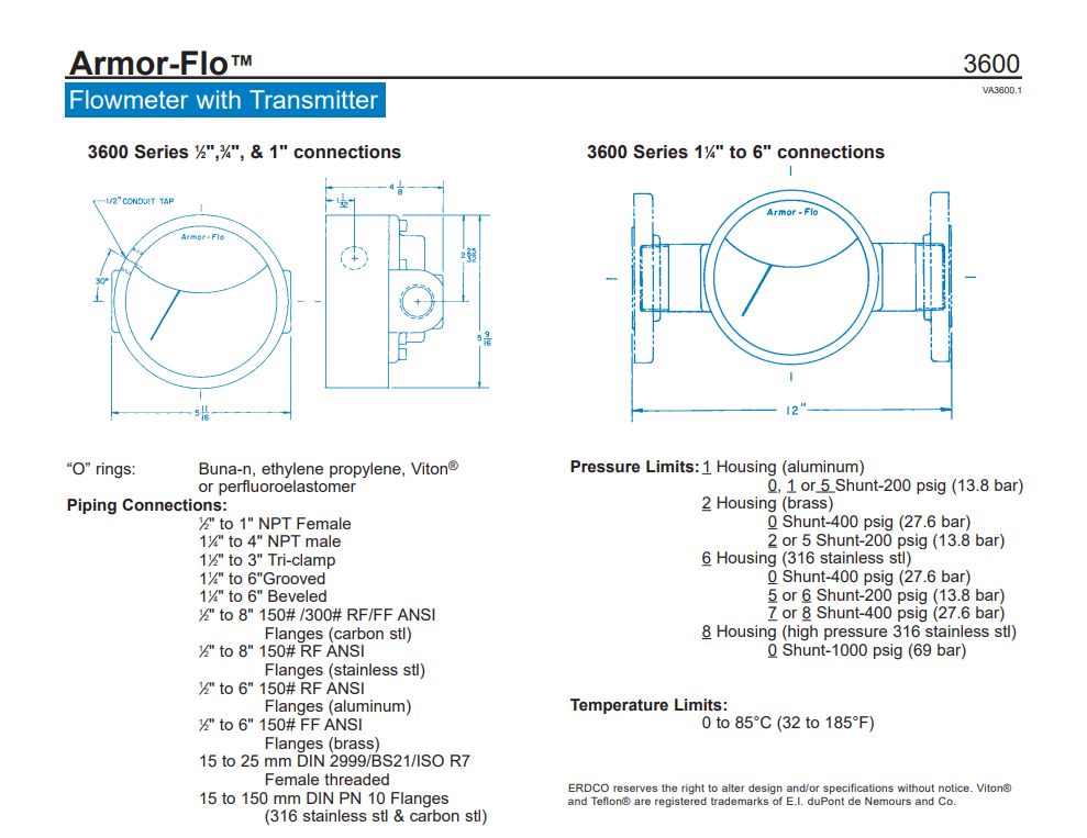 ERDCO Engineering Armor-Flo 3600 带内置发射器的流量计