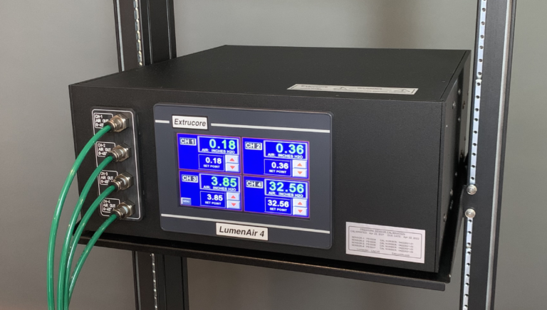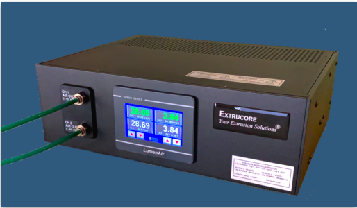 LumenAir 系列精密空气系统是为挤出模具提供稳定、高精度气流的行业标准设备。该系统可提供 1 路或 2 路独立控制的空气输出,每个空气通道由独立的设定值控制 —— 可通过触摸屏输入,也可通过挤出控制系统连接的标准外部控制接口远程设置。