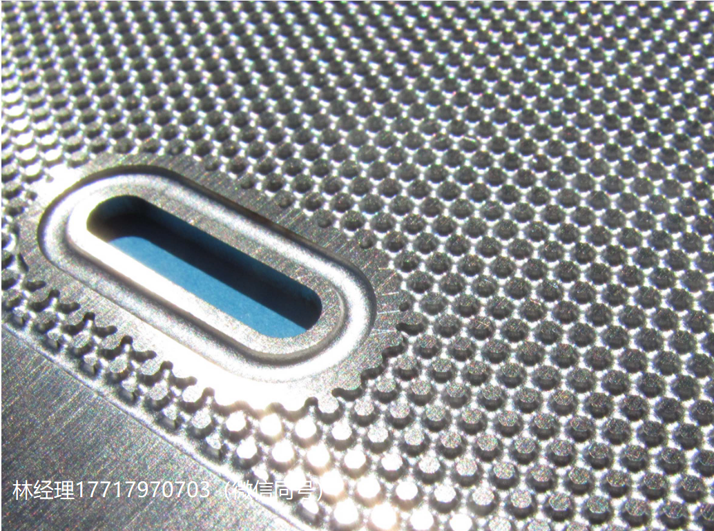 未被照射的部分溶解在溶剂中。然后将钢板放入一台机器中,机器上的喷嘴将腐蚀性液体喷射到钢板上。因此,具有不同图案设计的两侧可以同时开槽。