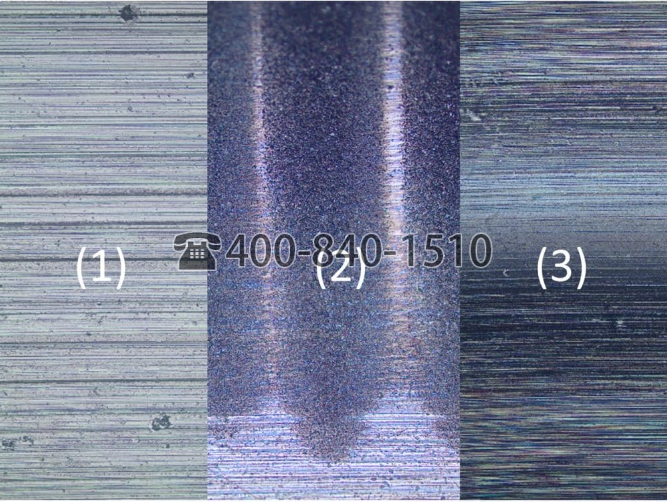 图:轴承滚道上典型的电气引起的磨损图案 – (1)坑洞(点蚀损伤),(2)凹槽,(3)灰色霜