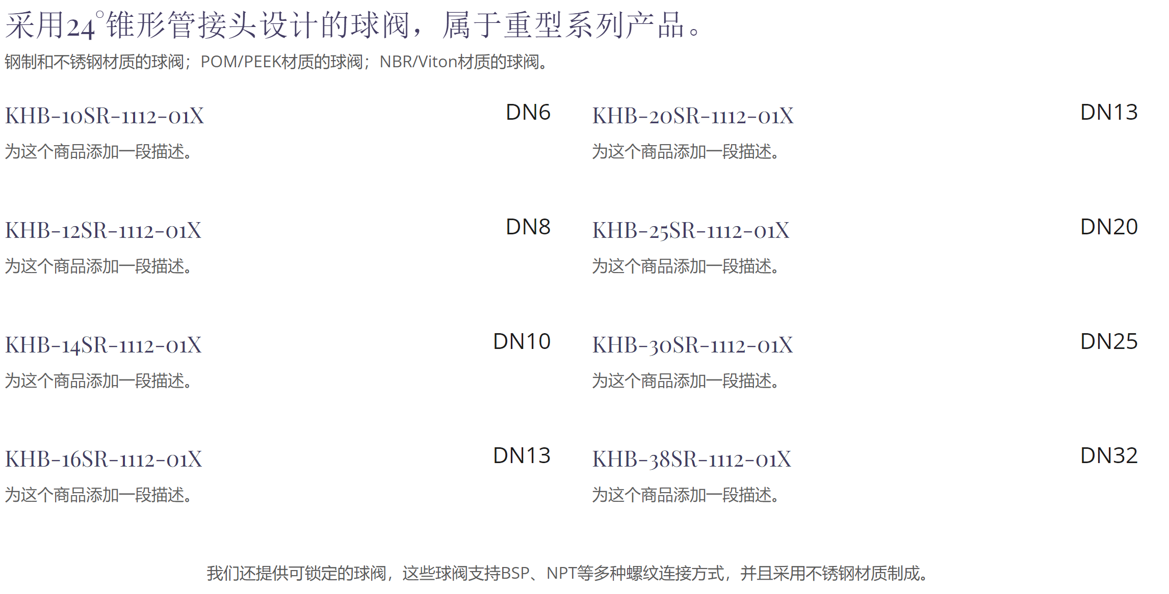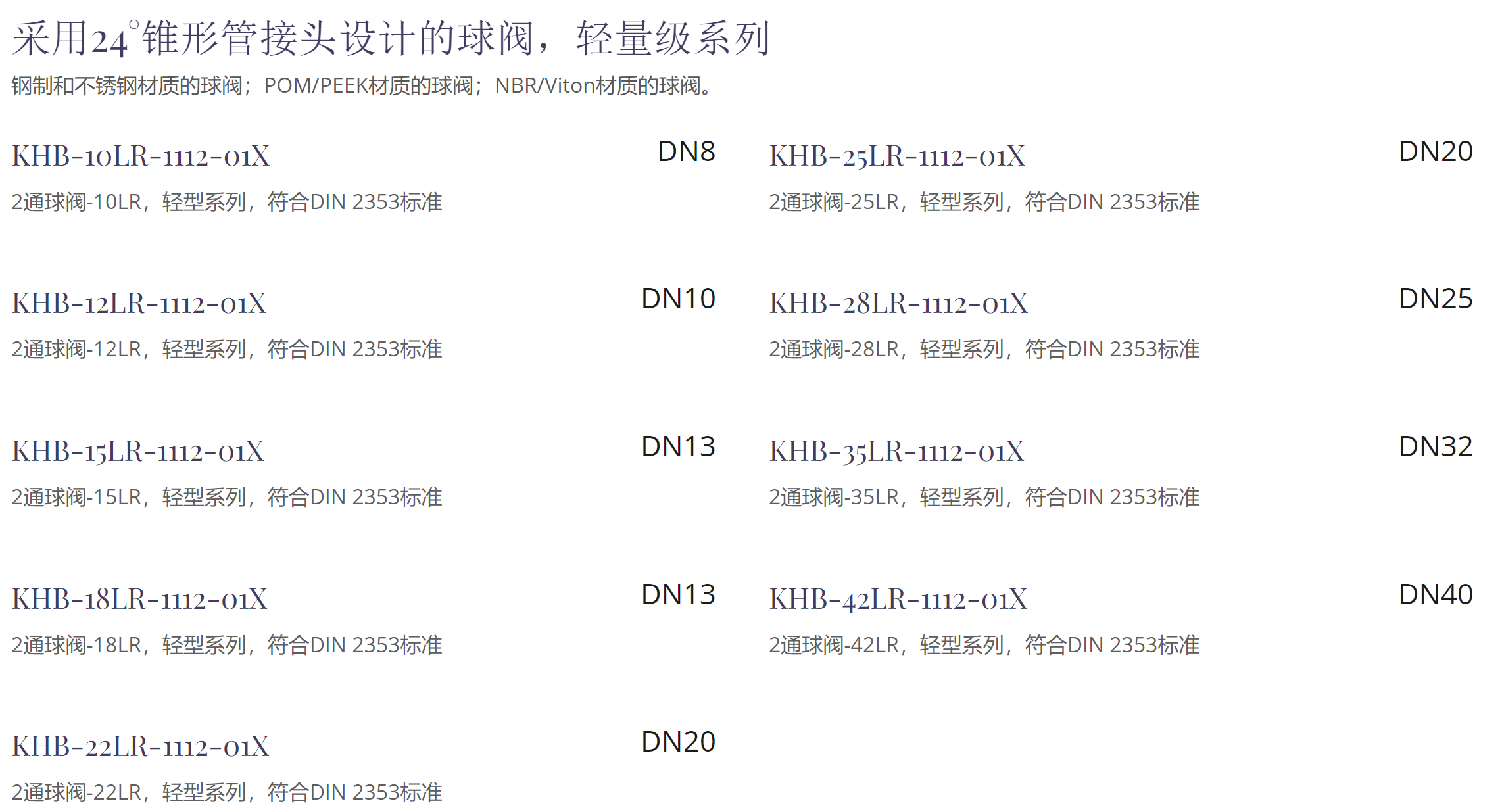 符合LR/SR类型ISO 8434标准的KHB/KHM球阀