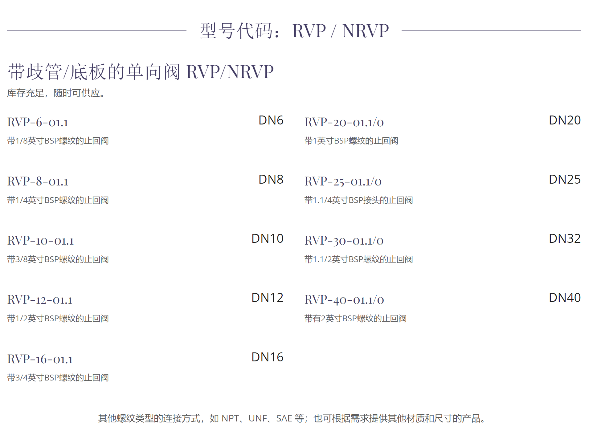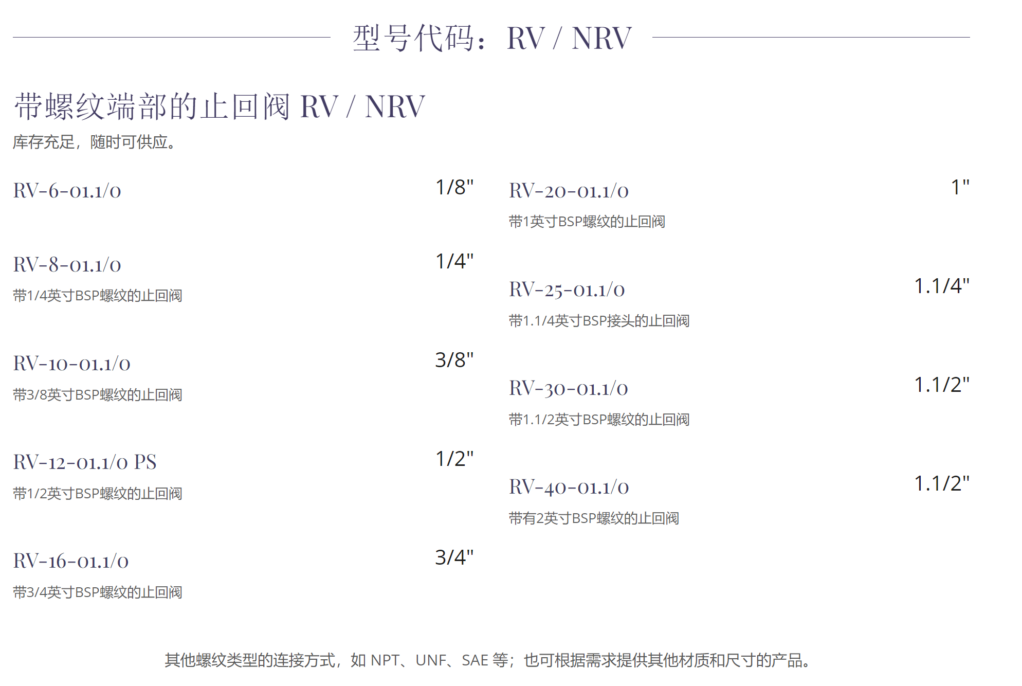 Flutec RV / RVP / NRV系列 止回阀