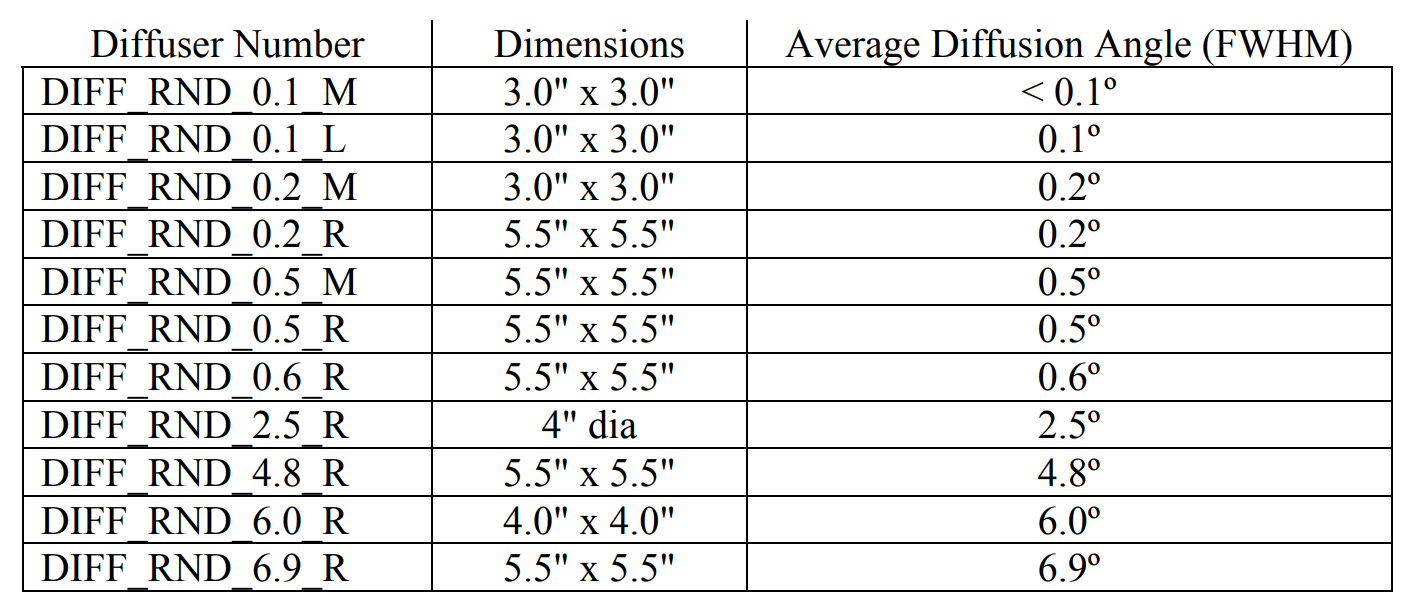 美国Fresnel Technologies DIFF_RND_0.1_M光学漫射器、扩散器、菲涅尔光学漫射器、Fresnel光学漫射器、Fresnel 进口代理