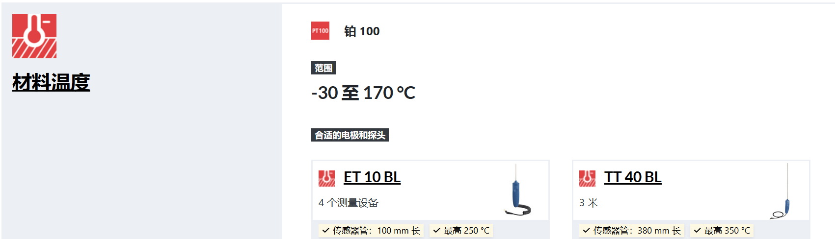 除了空气温度外,还可以测量表面温度(基于 Pt100 或红外线)和材料温度(也基于 Pt100)。