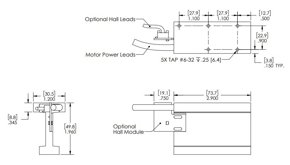 | Force Constant | 3.4 lbs/amp | 15.3 N/amp |