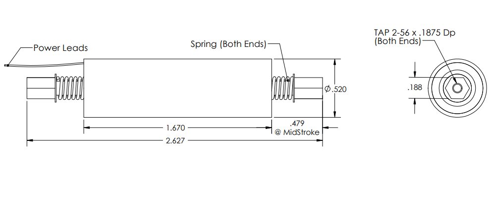| Force @ 100% Duty | 0.50 lbs | 2.2 N |