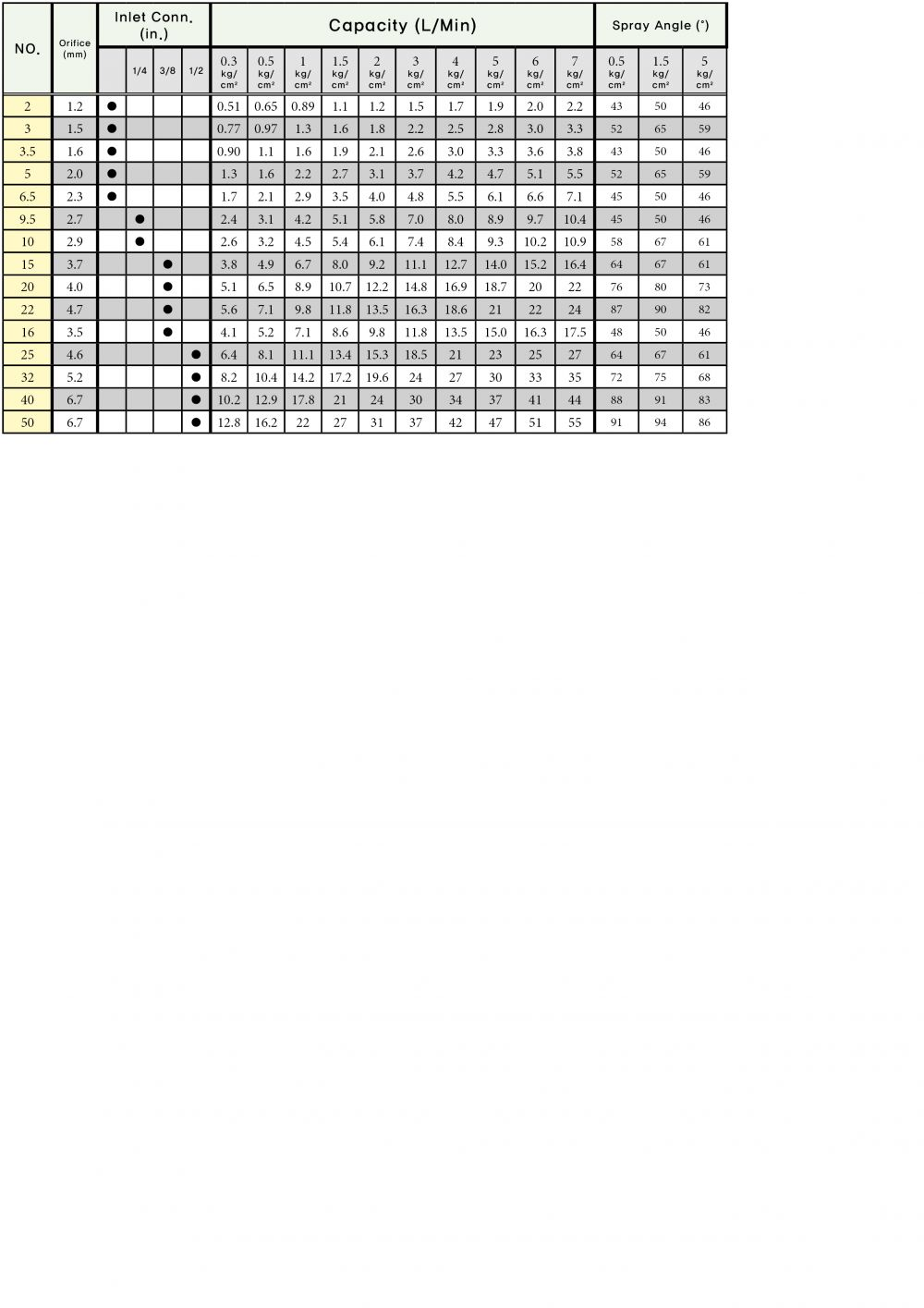 - 通过均匀的流量分布实现全锥形喷雾,无堵塞现象