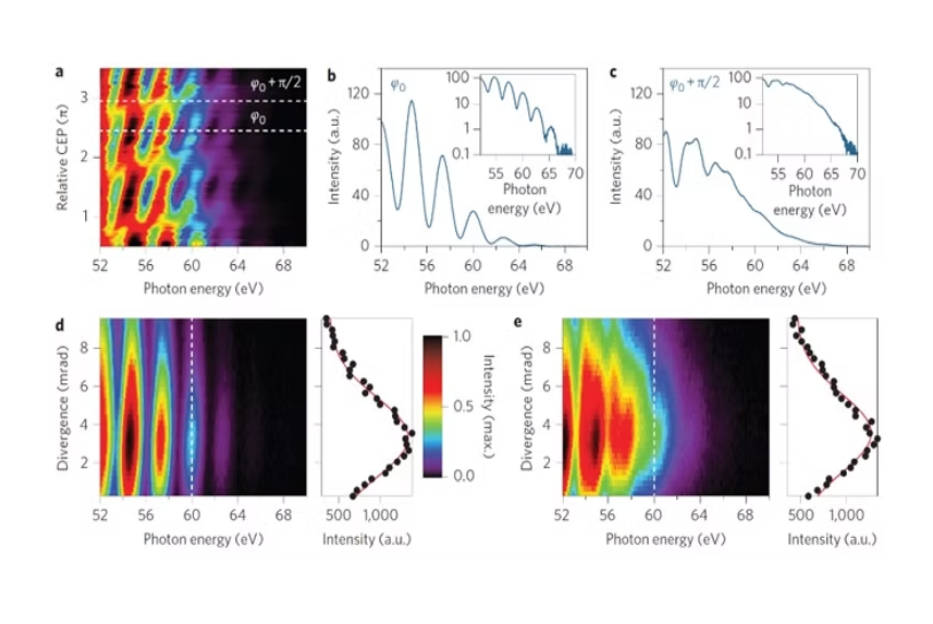随着 载波包络相位(CEP) 的变化,某些 CEP 设置下调制消失,表明产生了孤立的阿秒脉冲