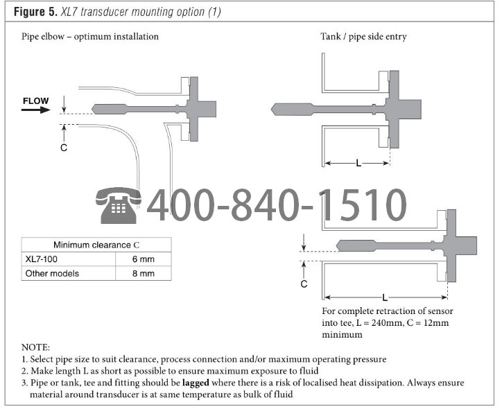 一般来说,XL7在线粘度计的性能与方向无关,但最好将传感器安装在不会使杂物堆积在振动元件周围的位置。