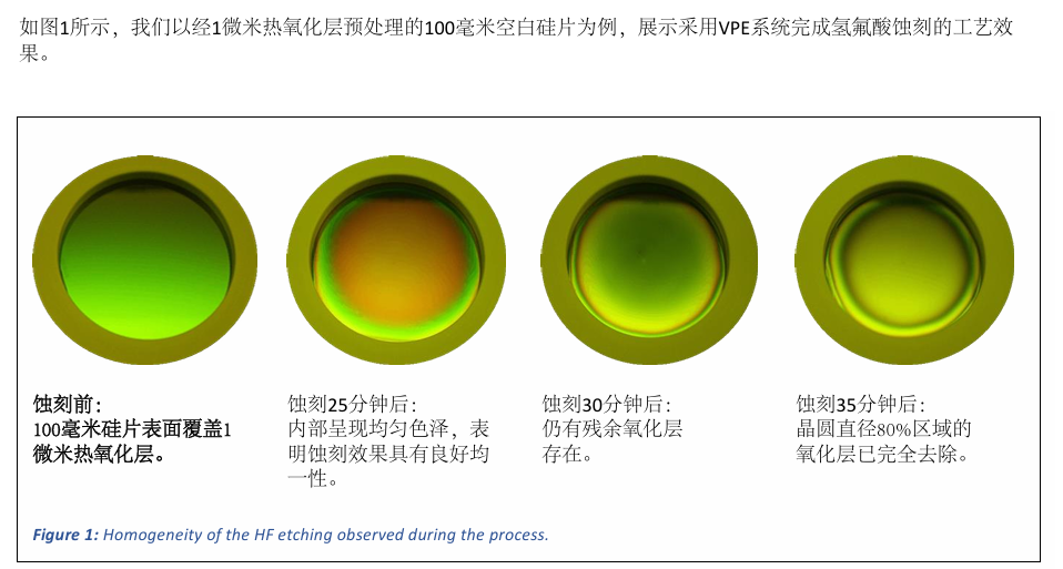二氧化硅蚀刻速率随反应腔内液态氢氟酸温度变化而改变。氢氟酸温度受洁净室环境温度影响,且在长时间蚀刻过程中会因放热反应持续升温,导致晶圆间蚀刻速率递增,直至系统达到热平衡状态。