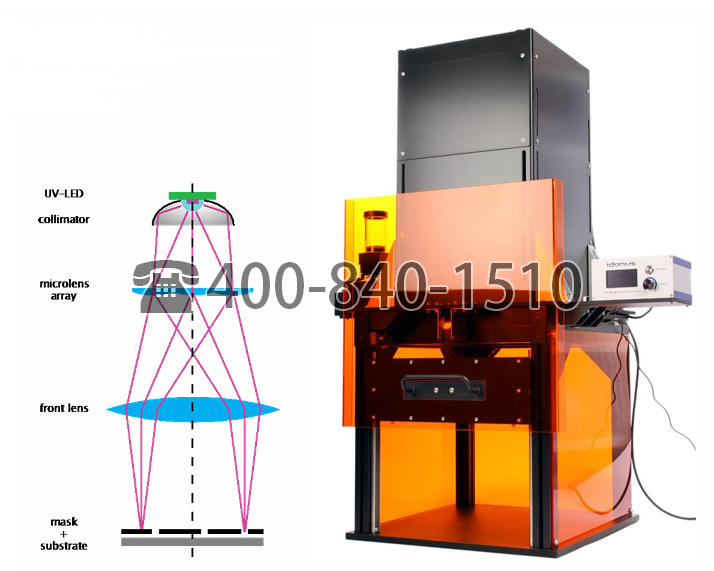 idonus推出了完整的UV-LED曝光产品系列。我们的系统集成了市场上最有效的UV-led和高级微透镜阵列。它们完全在内部组装和控制。我们的设计采用了全远心光学系统,可在整个曝光区域提供可重复且均匀的照明条件即具有非常小的发散角的高度均匀和稳定的强度。这种尖端光学器件确保整个基板完全均匀曝光,产生具有直侧壁的固化光刻胶,并实现具有微米临界尺寸的图案的精确微结构。