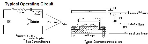Infrared Associates,Inc.提供高质量的液氮冷却的 HgCdTe检测器。每个检测器针对以下特定频段进行了优化:为2μm至5μm,2微米至为13μm或我们的FTIR系列波段可达2微米至24μm,如所示的表格下方。