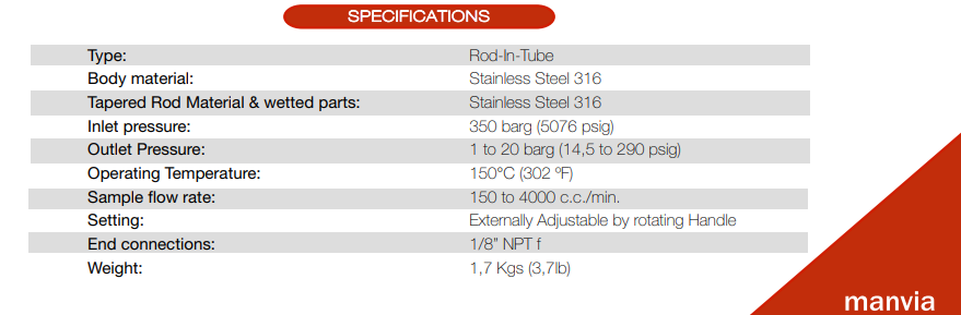 高压减压阀设计用于高压(35 barg/507psig以上)锅炉取样管线,入口压力高达350 barg(5076 psig),出口压力可完全调节。ASME-PTC 19.11推荐使用这种类型的减压器。