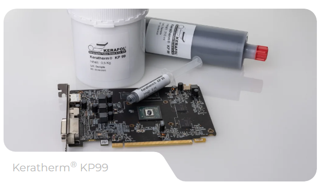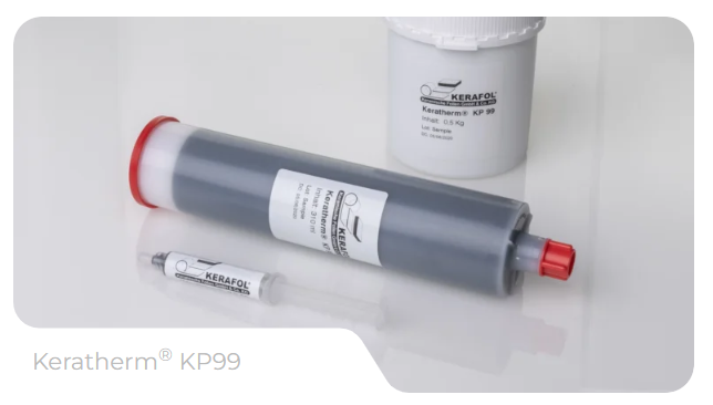 | kerafol KP99 | 含硅导热硅脂 | 非常高的导热系数;易于涂敷;提供多种包装形式(针筒、胶筒、罐装、桶装);极低的粘接层厚度 |